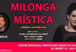 2. Stages Milonga Mística Alejandro De Benedictis10 juillet 2023 Milonga Mística Vendredi 20 février 2026 20h-21h15: cours technique follower par Camille Serre 21h15-01h : Soirée. DJ Braulio...